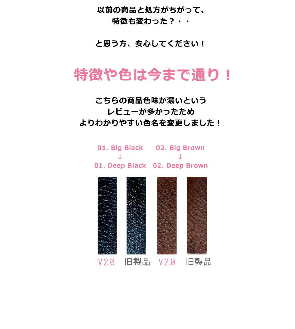 広告文責株式会社エーキューブアソシエーション (06-4705-7573)メーカー/発売元Witch's Pouch輸入者名株式会社ピコモンテジャパン区分韓国製/化粧品 ※リニューアル当店更新日時 2017年10月26日19:00 ※リニューアルによる変更点 ・商品名 ・パッケージデザイン(画像参照) ・1.2g→1g ・成分 【旧成分】 ビッグブラック:水、アクリレーツコポリマー、カーボンブラック、BG、オレス−10、ポリソルベート60、ペンチレングリコール、フェノキシエタノール、EDTA−2Na、カプリリルグリコール、エチルヘキシルグリセリン、1,2−ヘキサンジオール、プロパンジオール、ダイウイキョウ果実エキス、カミツレエキス、チャ葉エキス、アロエベラ葉エキス ビッグブラウン:水、アクリレーツコポリマー、酸化鉄(ベンガラ)、BG、ペンチレングリコール、ステアレス−20、ポリアクリル酸Na、カーボンブラック、フェノキシエタノール、EDTA−2Na、カプリリルグリコール、クエン酸、エチルヘキシルグリセリン、1,2−ヘキサンジオール、プロパンジオール、ダイウイキョウ果実エキス、チャ葉エキス、アロエベラ葉エキス、カミツレエキス 【新成分】 01 ディープブラック:水、BG 、(アクリレーツ/アクリル酸エチルヘキシル)コポリマー、カーボンブラック、(スチレン/アクリレ−ツ/メタクリル酸アンモニウム)コポリマ−、ペンチレングリコ−ル、(アクリレ−ツ/オクチルアクリルアミド)コポリマ−、ベヘネス−30、タチアオイ花エキス、1,2−ヘキサンジオ−ル、ポリグリセリル−3ジシロキサンジメチコン、AMP、ラウレス−21、(C11−15)パレス−7、カプリリルグリコ−ル、ラウレス−12硫酸Na、EDTA−4Na、エチルヘキシルグリセリン、ソルビン酸K、フェノキシエタノ−ル 02 ディープブラウン:水、アクリレ−ツコポリマ−、ベンガラ、(スチレン/アクリレ−ツ)コポリマ−、BG 、(アクリレ−ツ/オクチルアクリルアミド)コポリマ−、ペンチレングリコ−ル、ポリアクリル酸Na、ステアレス−20、1,2−ヘキサンジオ−ル、ポリグリセリル−3ジシロキサンジメチコン、カーボンブラック、AMP、クエン酸、ベヘネス−30、(アクリロイルジメチルタウリンアンモニウム/VP)コポリマ−、デヒドロ酢酸Na、フェノキシエタノ−ル リニューアル前商品画像 リニューアル後商品画像