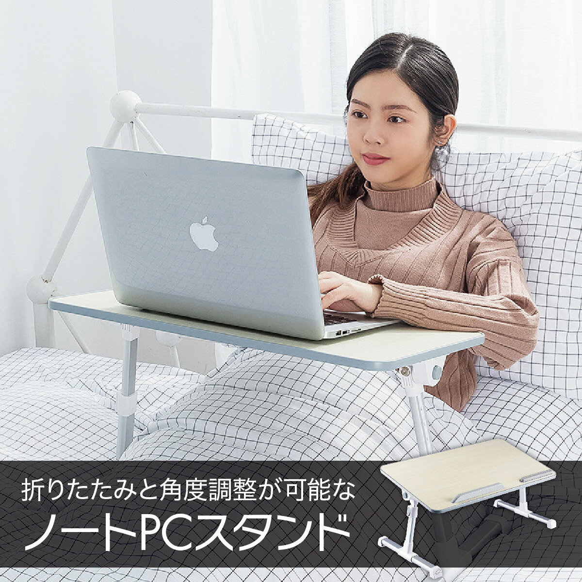 ベッドの上でノートパソコンが使えるノートPCスタンドベッドや座椅子等、様々な使い方ができる便利な折りたたみテーブルです。
