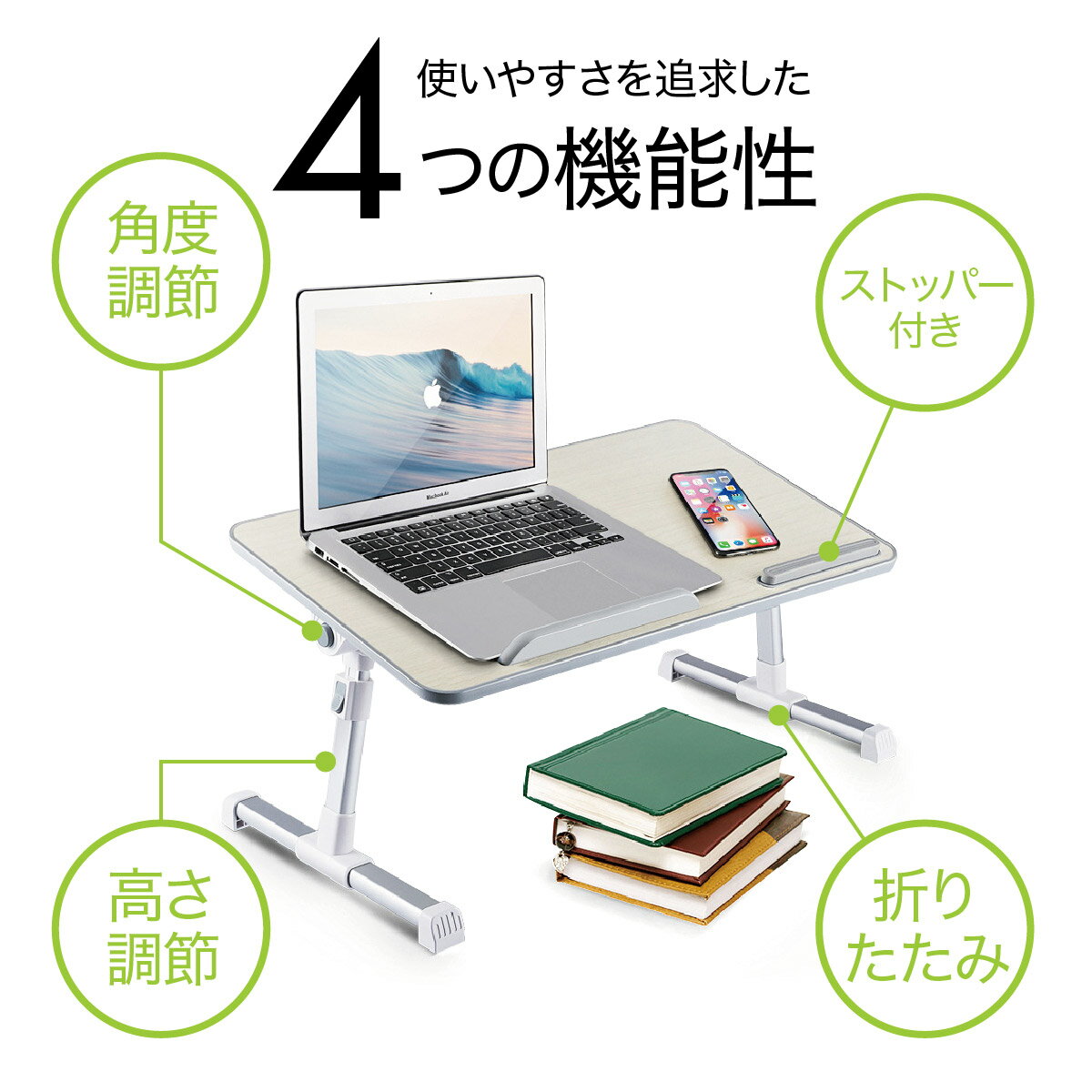 角度も高さも調整できるテーブルは、ノートパソコンスタンドだけではなく、子供用ダイニングテーブル、ベッドテーブル、タブレットスタンドとしても使えます。