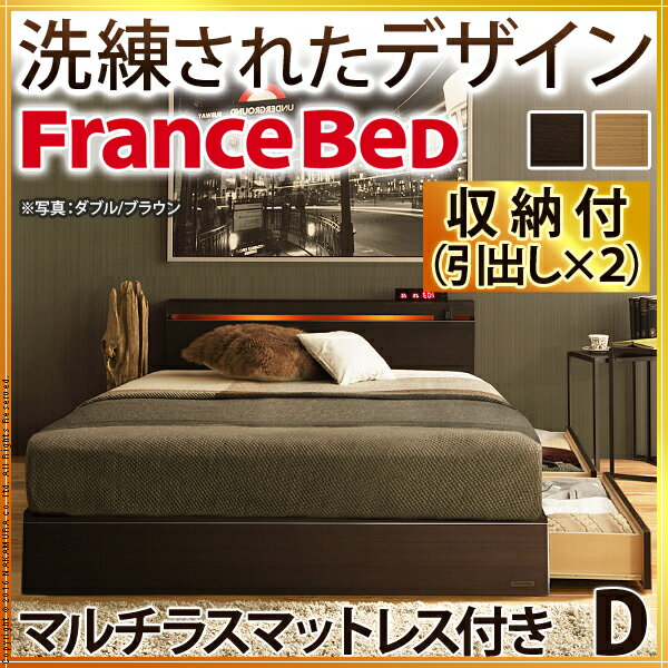 【送料無料】フランスベッド ダブル 収納 ライト・棚付きベッド 〔クレイグ〕 引き出し付き ダブル マルチラススーパースプリングマットレスセット ベッド下収納 木製 日本製 宮付き コンセント ベッドライト マットレス付き【代引不可】
