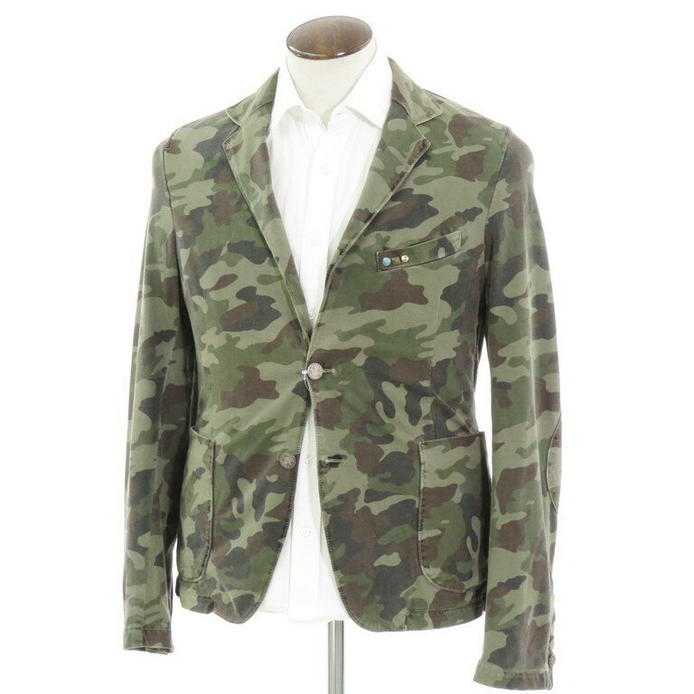 【中古】ジョルディーズ JEORDIE'S カモフラージュ柄 コットンジャージー 2つボタン カジュアルジャケット ミリタリーグリーン×ブラウン【サイズ52】【GRN】【S/S】【状態ランクC】【メンズ】【10102-955973】