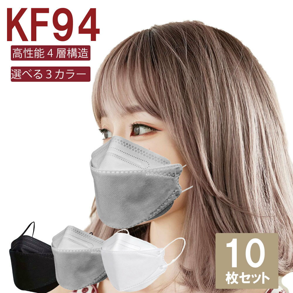 KF94マスク 柳葉型 不織布マスク 韓国規格 立体マスク グレーマスク 使い捨てマスク 不織布4層フィルター メガネが曇りにくい 口紅が付きにくい 10枚セット 送料無料 ネコポス発送